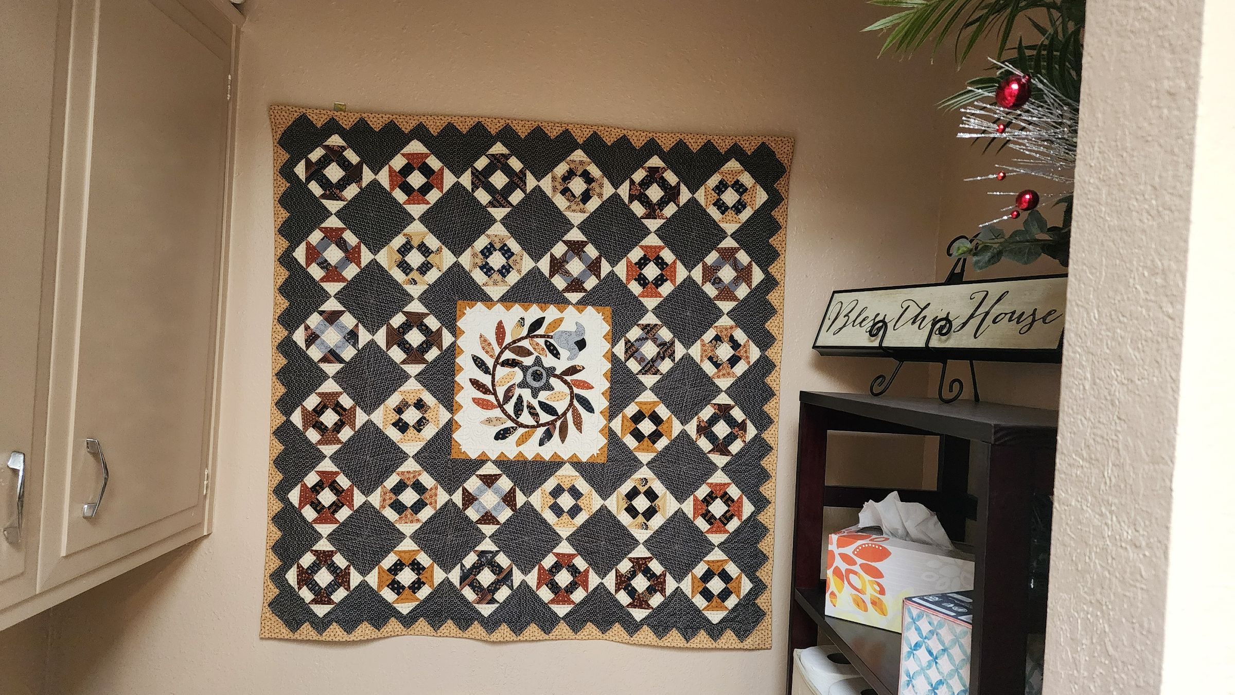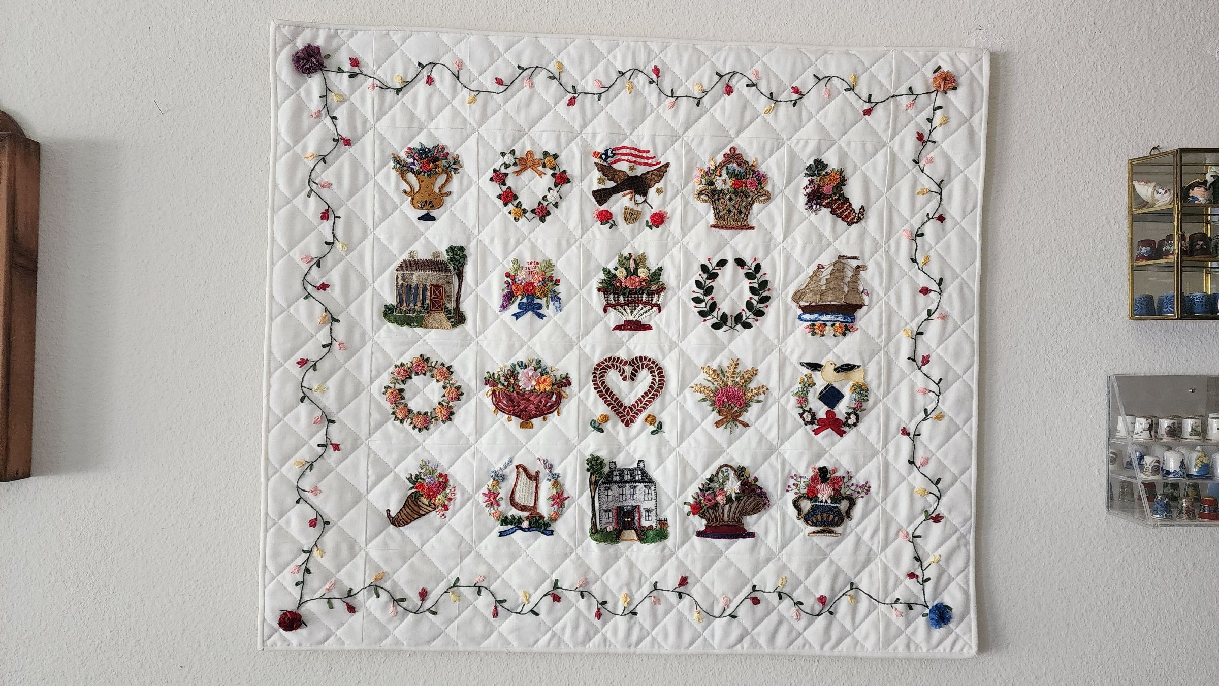 Upon retirement Linda returned to her love of sewing. For Linda that meant counted cross stitch, quilting and applique.  Anyone who's been in our unit will testify to the fabulous quilts that adorn the walls. To say that she was a talented quilter (and applique artist) is truly an understatement.  Check out these pictures below and come see several quilts at the memorial service.