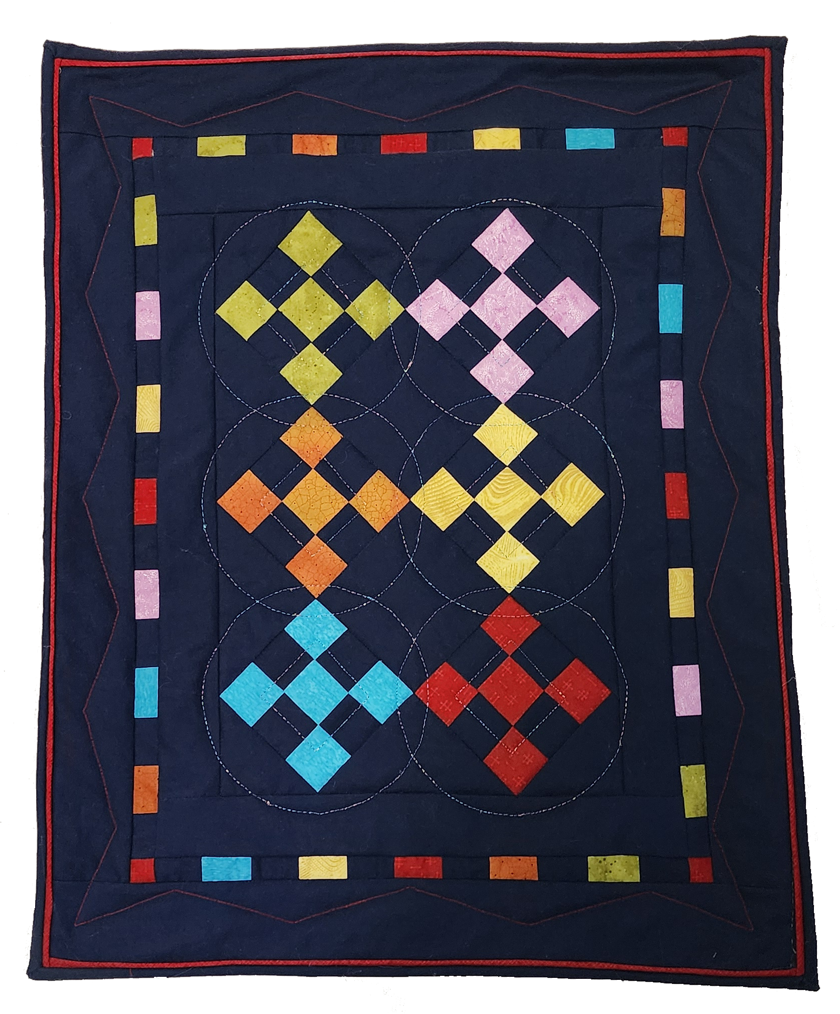 Of course making quilts wasn't enough for Linda.  Putting her organizational skills to use meant being part of the Lansing Area Patchers, the Capital City Quilt Guild and a founding member of the Greater Lansing Quilt Guild. Linda not only enjoyed working with other quilters, she also invested in the groups by serving in several board positions in LAP and CCQG.  But moving from Michigan didn't mean that Linda was no longer in a guild.  She immediately joined the Crazy Quilters Guild in Laguna Woods, serving as it's membership chair and the newsletter editor for several years and organizing the Road to California bus trip several times as well.  Linda never just joined a group, she was always committed to its success.
